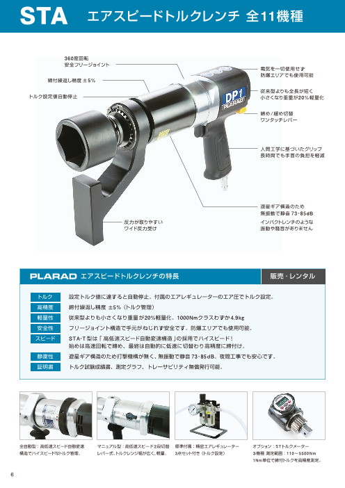 PLARAD エアートルクレンチDP2 ・ストレート型 7機種 ・L型 7機種 ・全14機種:最大トルク145Nm~8000Nm。 DP2-05STA トルクレンチ500Nm DP2-10STA トルクレンチ1000Nm DP2-20ST...