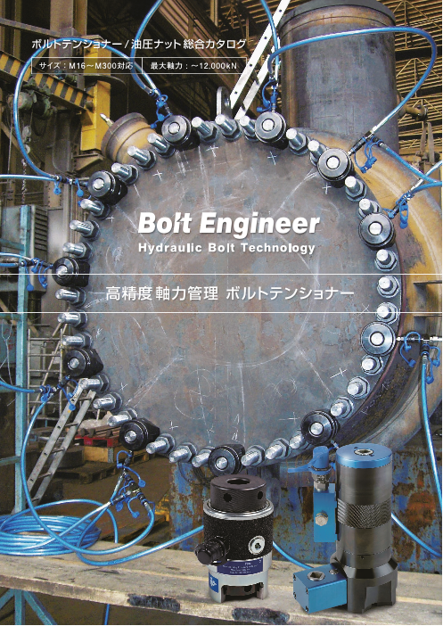 ボルトテンショナーは複数の大型ボルトを同時締め付けができます。ボルトへ軸力をかけて【...