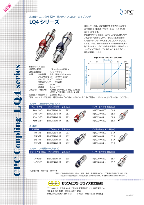 CPCカップリングをサイズ、材質、口径から選びやすく分類表示したダイジェスト版カタロ...