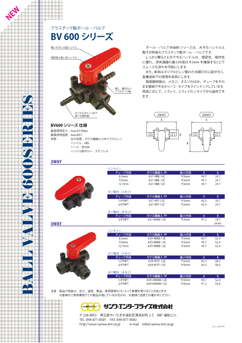 しっかり握ることができるハンドルは、視認性、操作性に優れ、流体通路の最小内径は9.5mmを確保することでスムーズな流れを可能にします。 ●操作性、視認性に優れた大型ハンドル ●耐薬品性に優れたポリプロピレン本体 ●接液部はタケノコ、メネジ、オネジか...