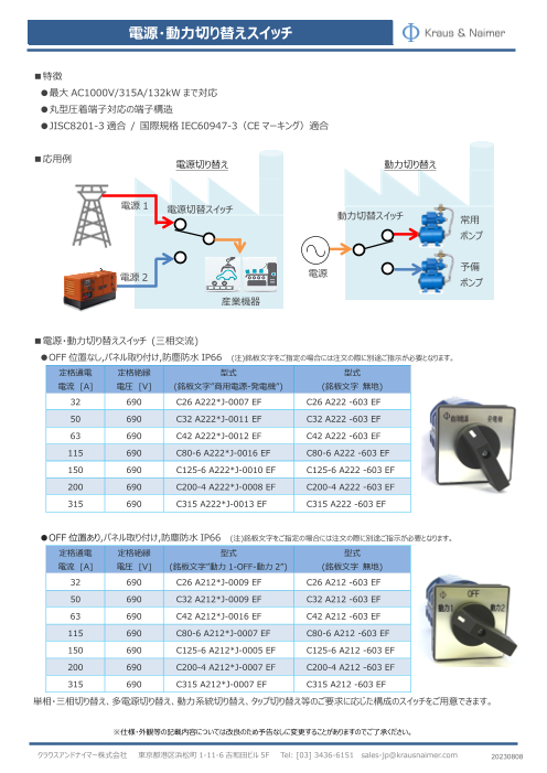 ◆丸型圧着端子対応の端子構造 ◆国際規格 IEC60947-3(CE マーキング)対応 ◆パドロック(南京錠取り付け)、銘板文字のご指定、防水ボックス等の多様なオプションに対応 ◆単相・三相切り替え、多電源切り替え、動⼒系統切り替え、タップ切り替...