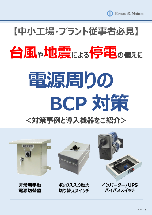 地震や台風などにより、いつ起こるかわからない"停電"。最近はBCPの一環として、取引先から工場の停電対策の実態について確認されるという声もよく聞かれます。「コストがかけられない」などの理由で停電対策を見送っていた方へ、動力安全スイッチの専門メーカー・クラ...