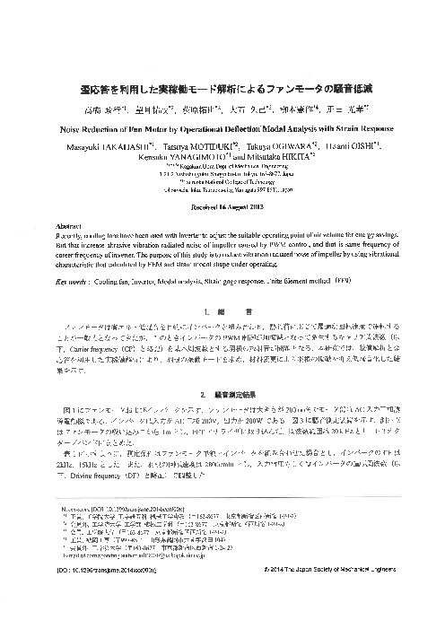 ・ファンモータは大きさが200mm角でモータ部はAC入力三相誘導電動機である。 ・インバータは入力がAC三相200V、出力が200Wである。 ・ファンモータにインバータを組み合わせた場合、CF2kHzで羽根のカップ天面が同位相で軸方向に振動し、その結...