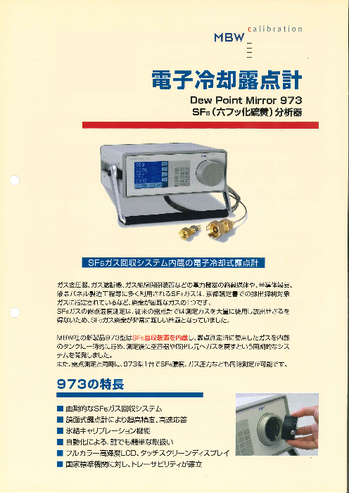 ・画期的なSF6ガス回収システム ・鏡面式露点計により超高精度、高速応答 ・氷結キャリブレーション機能 ・自動化による、誰でも簡単な取扱い ・フルカラー高輝度LCD、タッチスクリーンディスプレイ ・国家標準機関に対し、トレーサビリティが確立 ...