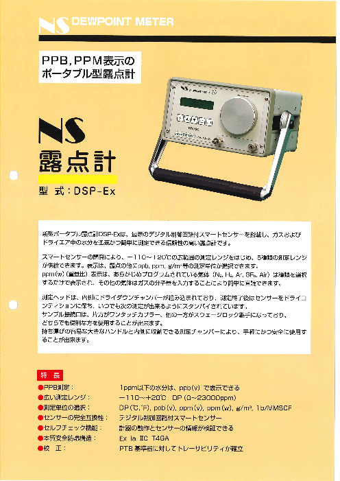 ◆PPB測定:1ppm 以下の水分は、ppb(v)で表示できる ◆広い測定レンジ:-110~+20℃ DP (0~23000ppm) ◆測定単位の選択:DP,ppb (v),ppm( v),ppm( w). g/m3,1b /MMSCF ◆センサー...