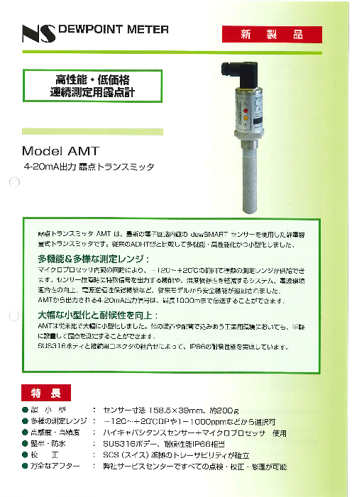 ◆鏡面式露点計により超高精度、高速応答 ◆氷結キャリブレーション機能 ◆タッチパネル型フル力ラー高解像度LCD ◆自動化による、誰でも簡単な取扱い ◆霜と露を自動識別して高精度を実現 ◆国家標準機関に対し、トレーサビリティが確立 ◆詳細は...