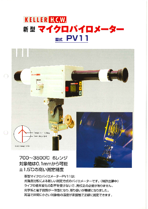 光強度比較による新しい測定方式のパイロメーターです。(特許出願中) ライプの経年変化の影響を受けないで、再校正の必要がありません。 光学系と電子回路が一体型になり、取り扱いが簡便になりました。 高温で非常に小さい対象物の温度が非接触で正確に測定でき...