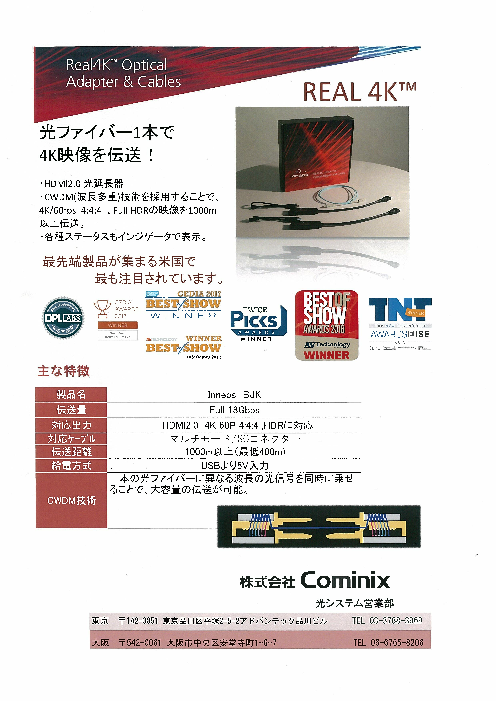 CWDM高速光伝送の独自技術で、他社とは一線を画すReal4K映像を伝送!