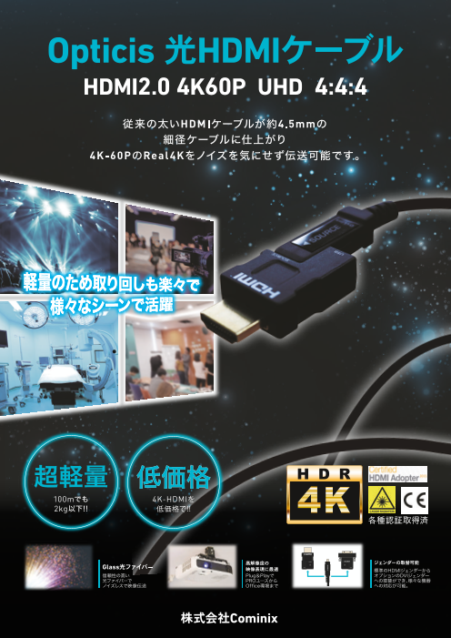 HDMIを光で通信。ノイズの影響を受けず非圧縮で4Kを映すことが可能!