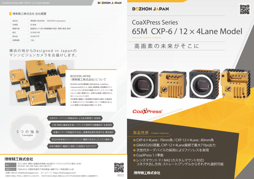 ●CXP-3/6/10対応しています。 ●Pregius 2nd Gen搭載しています。 ●CoaXPress1.1に準拠しています。 ●3.2M、5M、8.9M、12.3Mのラインナップがあります。
