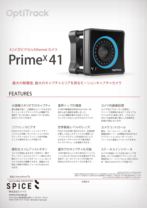 PrimeカメラシリーズがPrimeXとなり、よりパワーアップしました。 ◆大規模スタジオでのキャプチャ ◆業界トップの精度 ◆カメラ内画像処理 ◆リファレンスビデオ ◆世界最高レベルのレンズ ◆カメラコントロール ◆便利なエイムアシストボ...