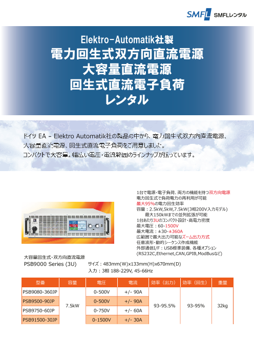 電力回生式双方向直流電源 ・大容量直流電源 ・回生式直流電子負荷