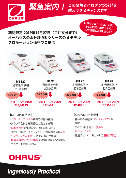 プロモーション価格(15%〜20%OFF)でハロゲン水分計を購入できるチャンスです。