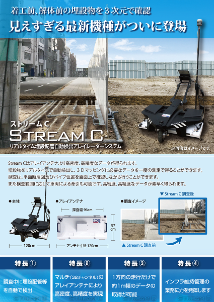 路面下(地中)の空洞や埋設管を高精度で確認できる探査機です。