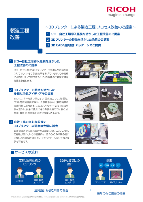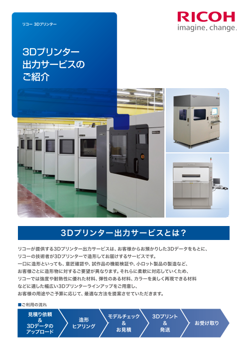 初めての方からプロユースまで 徹底したお客様サポートで幅広い要求にお応えします。 短納期対応から、最適な素材・造形方式・後加工のご提案まで、熟練の技術者が丁寧にご支援します。初めてのお客様も、是非お気軽にご相談ください。 リコーが提供する3D...