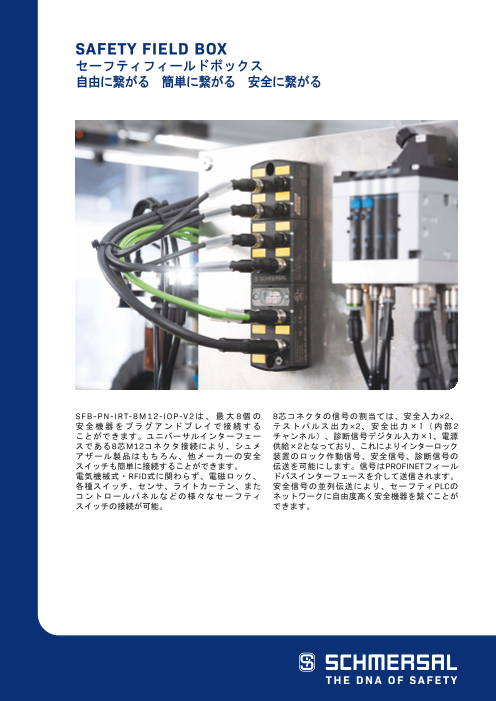 SFB-PN-IRT-8M12-IOP-V2は、最大 8個 の安全機器をプラグアンドプレイで接続することができます。ユニバーサルインターフェースである8芯M12コネクタ接続により、シュメアザール製品はもちろん、他メーカーの安全スイッチも簡単に接続すること...