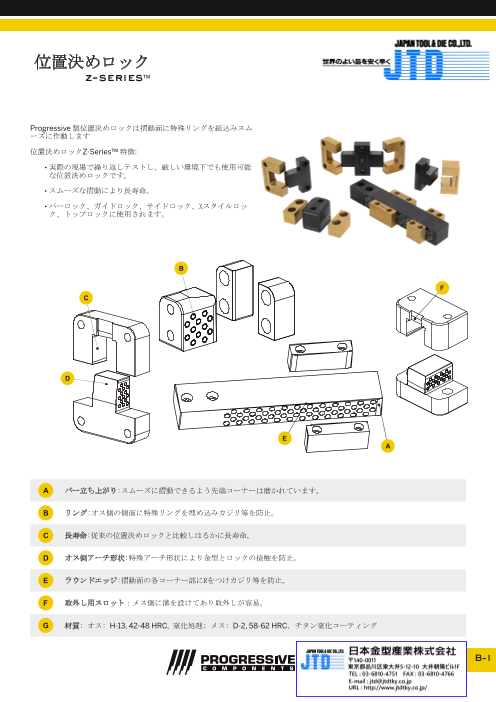 【Zシリーズ】は、摺動面に特殊リングを組込み、スムーズに作動するPROGRESSIVE社の金型位置決めロック。従来の位置決めロックと比較し大幅な長寿命を実現。バーロック、ガイドロック、サイドロック、トップロックなど、金型仕様に合わせて豊富なサイズを標準化...