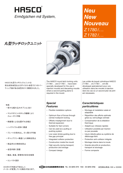 HASCO丸型ラッチロックユニットは 射出成形金型およびダイカスト金型で2つのパーテ...