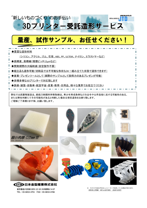 ◆豊富な造形材料 ◆高精度、高精細 ◆開発期間の大幅削減 ◆組立品も造形可能 ◆営業・プレゼンツールとして ◆多種多様な3Dプリンターで対応致します ◆医療・建築・自動車・航空宇宙・産業・教育・日用品、様々な業界でお役立てください ◆詳...