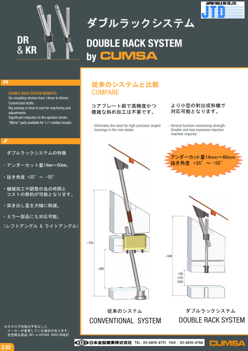 CUMSA 二段突出しシステムはエジェクタープレートの二段突出しやプレートの開きをコ...
