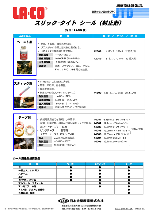 LACO社製 ペースト剤、スティック剤、テープ剤、かじり防止剤、エポキシ修復スティック剤、オイル漏れ修復スティック剤、加熱用修復スティック剤、ラストバスター錆取剤、ズームサポート潤滑剤