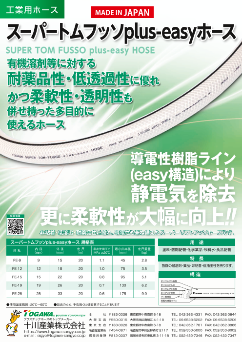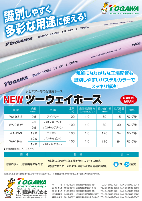 工業用樹脂ホースのトップメーカー 十川産業ホースカタログです。