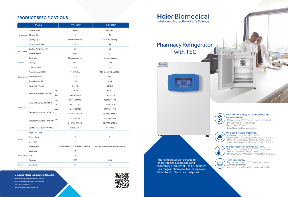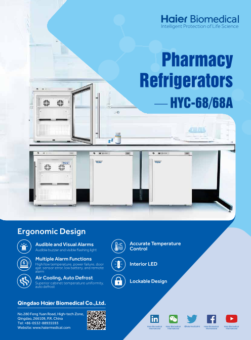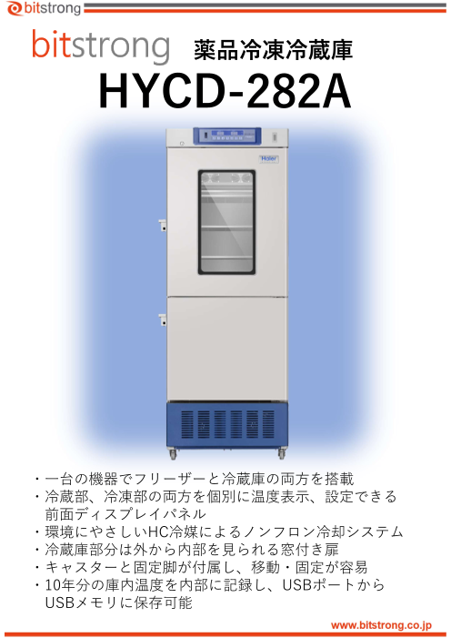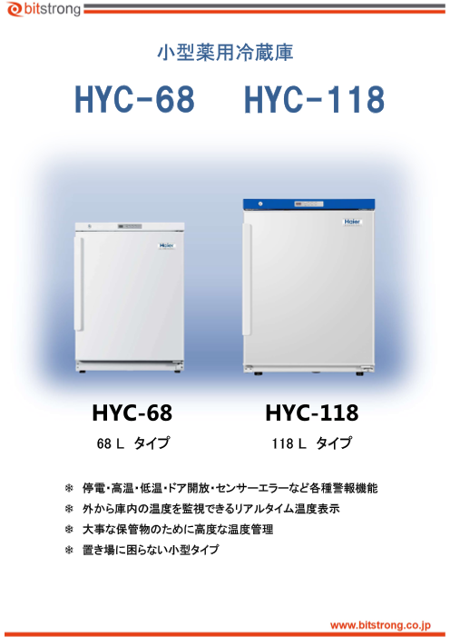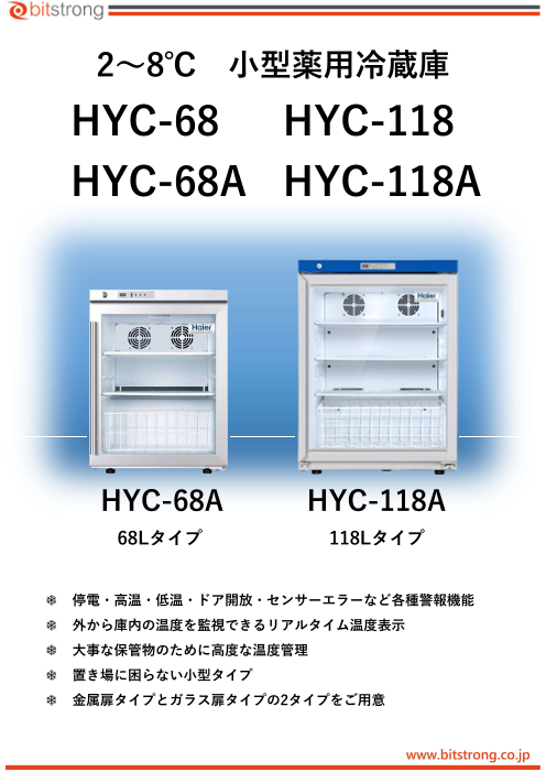 2~8℃ 薬品冷蔵庫 HYC-118 医療機関や研究機関、製薬企業などでワクチンや薬品、試薬などの保管に適した薬品冷蔵庫です。 ・最適化されたノンフロン冷却システムにより大幅な省エネを実現 ・高さ81cmと小型なので机の下などにも設置が可能