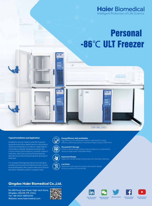 -80℃~-40℃小型超低温フリーザーDW-86L100J