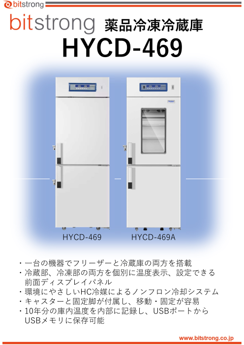 大型薬品冷凍冷蔵庫HYCD-469(冷蔵部:2~8℃、冷凍部:-40~-10℃)