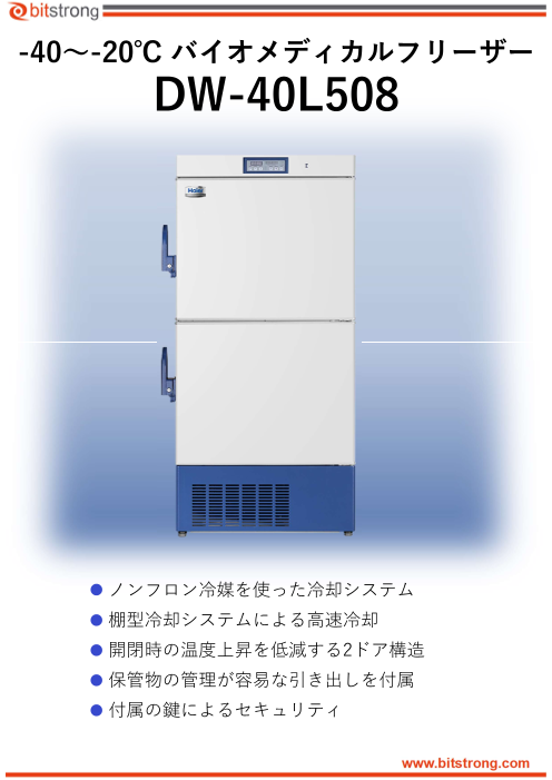 医療機関、研究機関、企業などで-60℃の低温での管理が可能なスーパーフリーザーです。 ・革新的な低温システムによる急速冷凍 ・43dBの低騒音作動 ・ノンフロン冷却システムの最適化により30%のエネルギー効率上昇と、約50%の省エネを実現