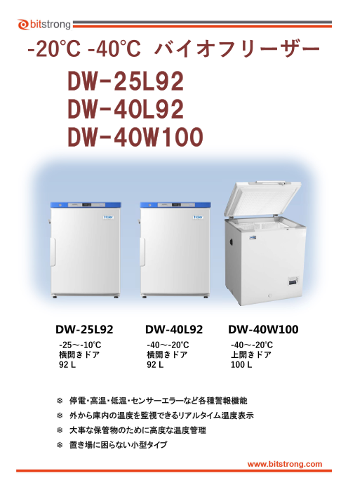 置き場に困らない小型タイプのバイオフリーザーです。 DW-25L92、DW-40L92(640×610×810 mm)、DW-40W100(685×650×810 mm)で机の下などの狭いスペースにも設置できます。(100Vで使用するための変圧器を付属...