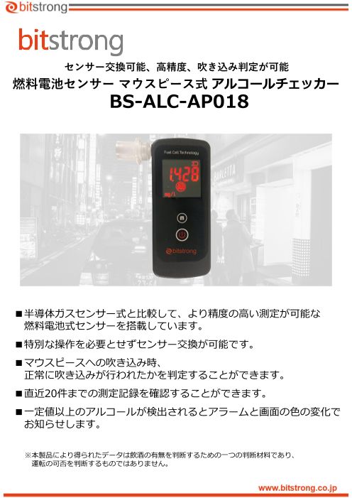燃料電池センサーマウスピース式/吹きかけ式アルコールチェッカーBS-ALC-AP40...