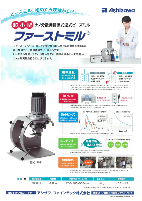 アシザワの独自に開発した機構を搭載、超小型分散機でのナノ分散実験を実現‼