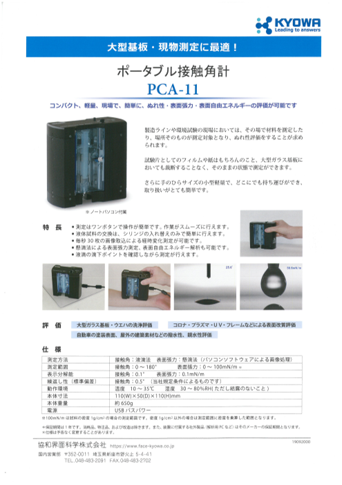軽量・コンパクトなので大型基板、現場でのぬれ性・表面張力・表面自由エネルギーの評価に...