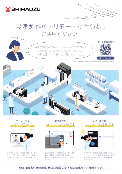 Web会議システム(Teams,Zoom,Webexなど)を利用して島津ラボまでお越しいただくことなく,分析装置・ソフト操作 をご覧いただけます。