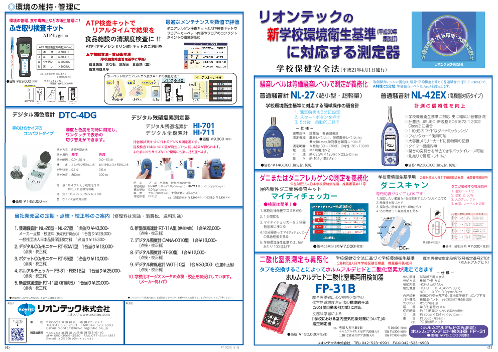 リオンテックの新学校衛生基準に対応する測定器を集めたカタログです。 リオンテック独自の商品もございますのでご更新、新規購入のご参考にご利用ください。