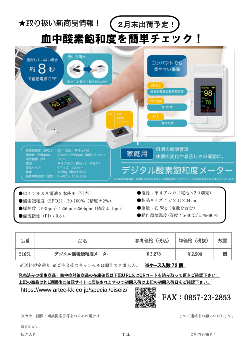 日頃の健康管理 体調の変化や息苦しさの確認に。 血中酸素飽和度とは血液中の酸素の量の事でSpO2と呼ばれています。値は%で表し、血液中の酸素の濃度が満タンだと100%、正常値で99~96%と言われています。体に疾患があったり体調不良などを起こして...