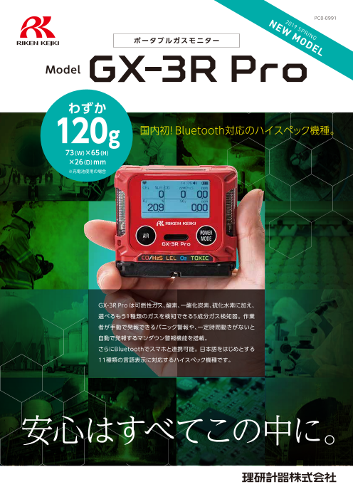 GX-3R Pro は可燃性ガス、酸素、一酸化炭素、硫化水素に加え、 選べるもう1種類のガスを検知できる5成分ガス検知器。 作業 者が手動で発報できるパニック警報や、一定時間動きがないと 自動で発報するマンダウン警報機能を搭載。 さらにBluet...