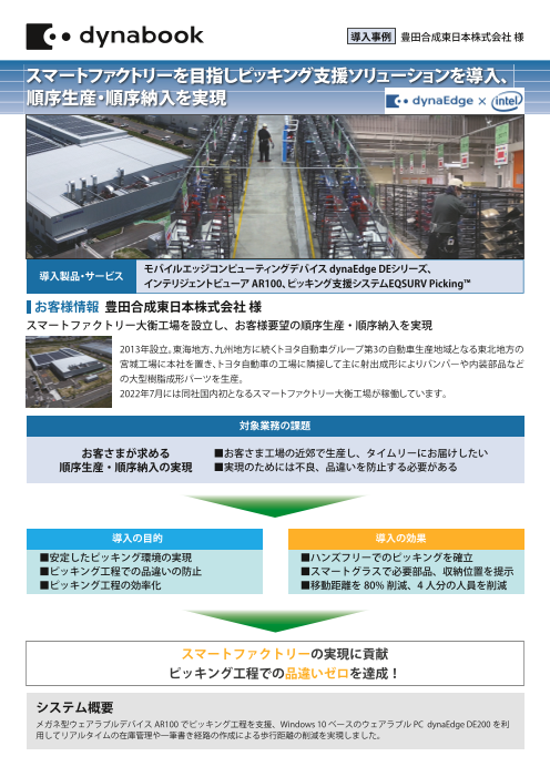Dynabookの現場DXソリューション スマートグラス活用ピッキング支援ソリューションのご紹介です。