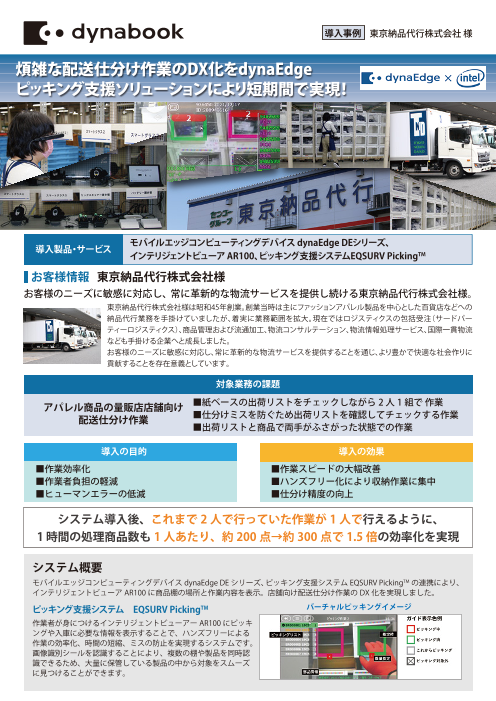 東京納品代行株式会社様のdynaEdgeピッキング支援ソリューション導入事例カタログです。