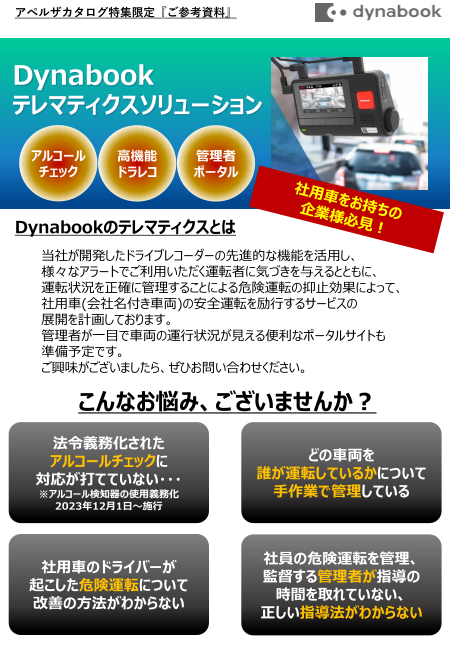 Dynabookのテレマティクスソリューションのメリット等ご紹介する内容です