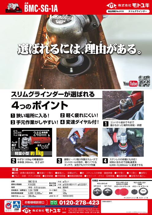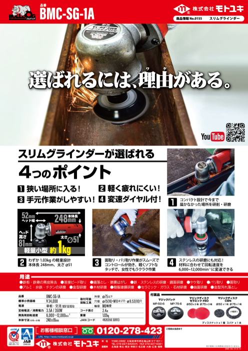 業界最軽量クラス!!研削・研磨作業 から スポーツなど 幅広く活躍します!!
