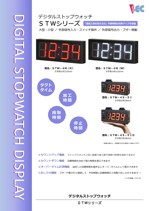 製造工数を時間表示する表示板。 「作業時間」「加工時間」「段取り時間」などの経過表示することにより、歩留まりを改善し、稼働率アップにご活用頂けます。 カウントアップ、ダウンはもちろんのこと、ブザーや回転灯を接続することにより、目標時間などのお知らせも...