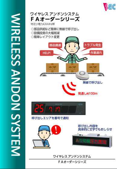 飲食店などで、 食事を注文する際に使用する、 呼出しシステムです、 工場現場においても、 広くご活用頂いております、 卓上送信機を押し、 「設備停止」「資材調達」など、 トラブル時に責任者呼出、 改善のスピードアップを図り、 無駄な...