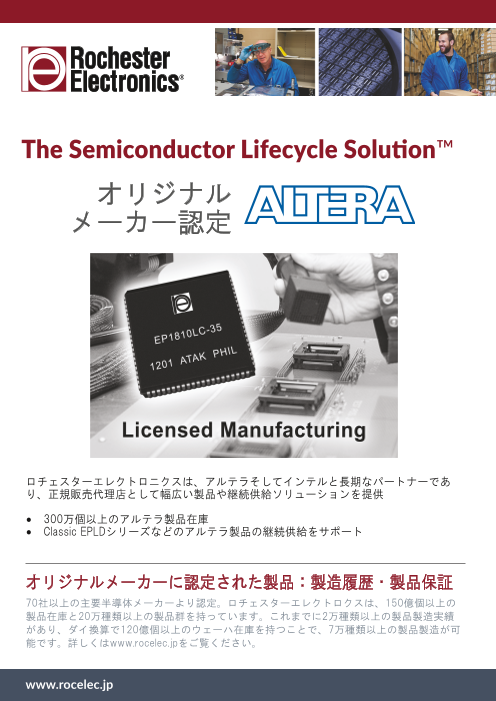ロチェスターエレクトロニクスは、アルテラそしてインテルと長期な パートナーであり、正規販売代理店として幅広い製品や継続供給 ソリューションを提供しています。 70社以上の主要半導体メーカーより認定。 当社は、150億個以上の製品在庫と20万種...