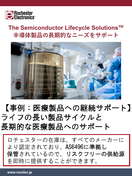 ロチェスターエレクトロニクスは医療製品への長期的な継続供給をサポートしております。 こちらの事例では、あるメーカーへのサポートをご紹介しております。 ★ご使用中の半導体製品の在庫入手でお困りではありませんか? ロチェスターでは、アナログ・デバイ...
