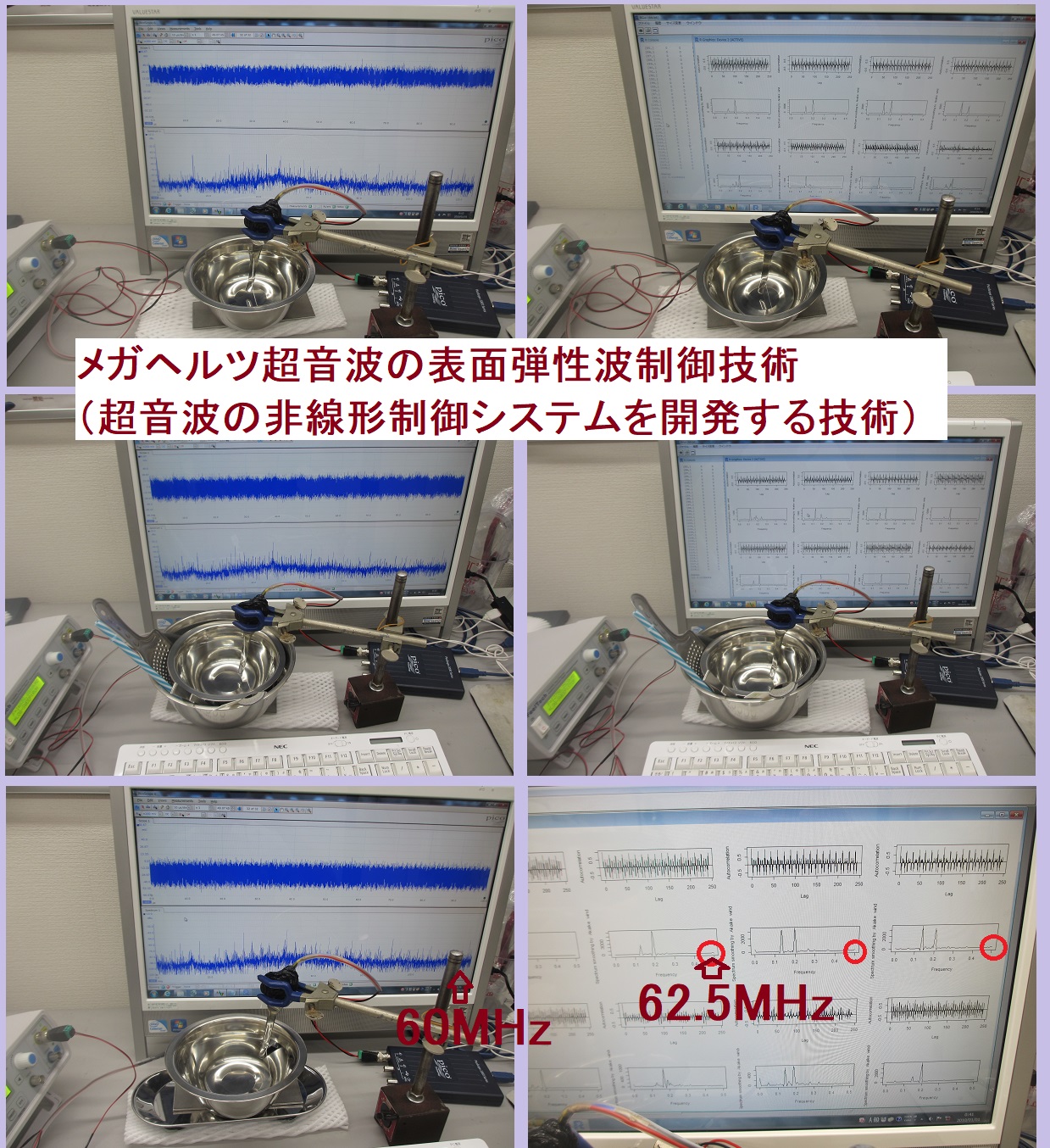 超音波システム研究所は、 超音波制御により表面弾性波を利用した、 応用システム技術を開発しています。 超音波(発振制御)と表面弾性波の組み合わせにより ダイナミックな超音波伝搬制御を実現します。 ポイントは 表面弾性波による非線形...