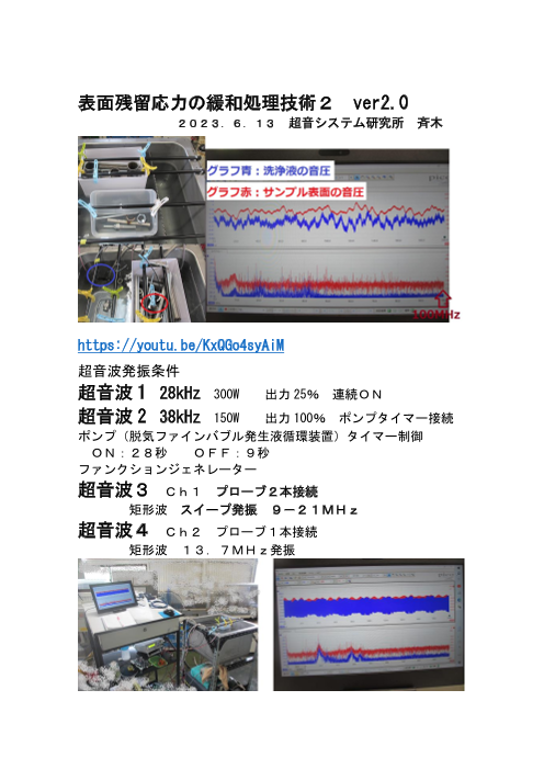洗浄で使われる超音波技術ノウハウ --音圧測定・解析に基づいた,超音波洗浄技術-- 超音波の利用ノウハウ 1:設置(超音波振動子、水槽・・の設置方法) 2:脱気ファインバブル発生液循環装置 (球形相...