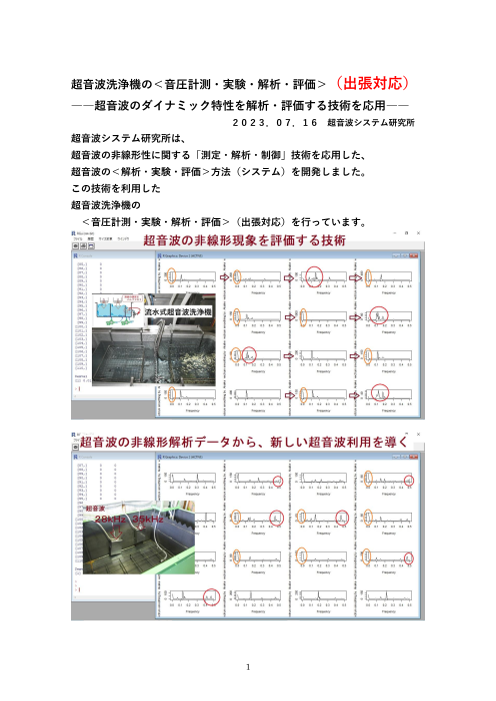 超音波システム研究所は、 超音波の非線形性に関する「測定・解析・制御」技術を応用した、 超音波の<解析・実験・評価>方法(システム)を開発しました。 この技術を利用した 超音波洗浄機の <音圧計測・実験・解析・評価>(出張対応)を行ってい...