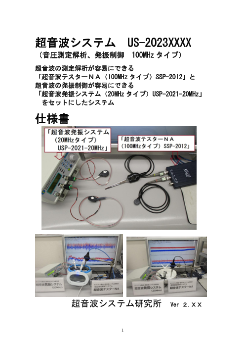 超音波システム研究所は、 超音波の測定解析が容易にできる 「超音波テスターNA(100MHzタイプ)」と 超音波の発振制御が容易にできる 「超音波発振システム(20MHz)」 をセットにしたシステムを製造販売しています 超音波発振制御プ...